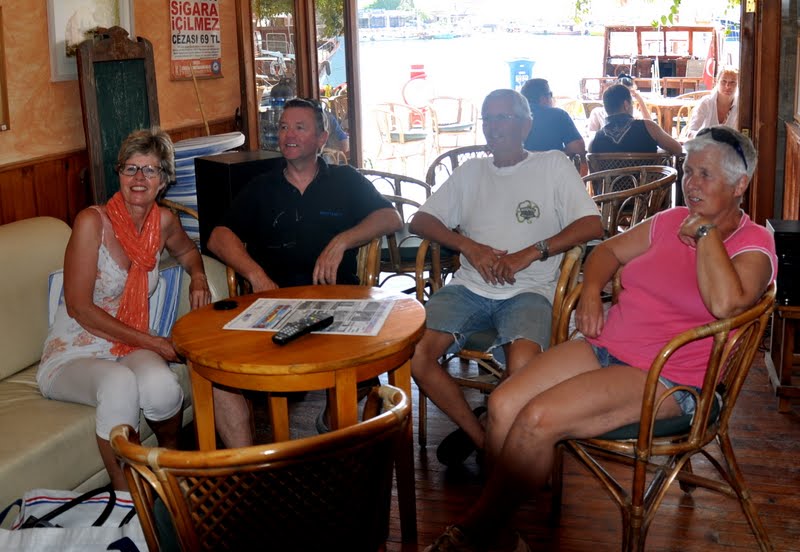 En dan is het dinsdag 30 april 2013, een speciale dag want er vind een troonswisseling plaats in Nederland en dat willen we hier ook graag, op afstand, meebeleven. Maar ja waar vinden we Nederlandse televisie. Willen en Ingeborg vertrekken rond zes uur in de morgen richting Datҫa. Wij zijn niet van die vroege vogels en hebben het wekkertje om 8.00 uur gezet. Als we een uur onderweg zijn roept de Wing IV ons op. Ze liggen al in de havenkom van Datҫa en……..ze hebben ook al een café gevonden die Nederland 1 kan ontvangen. Toppie. Om half elf Turkse tijd zitten we pontificaal voor een groot beeldscherm met een overheerlijke cappuccino.